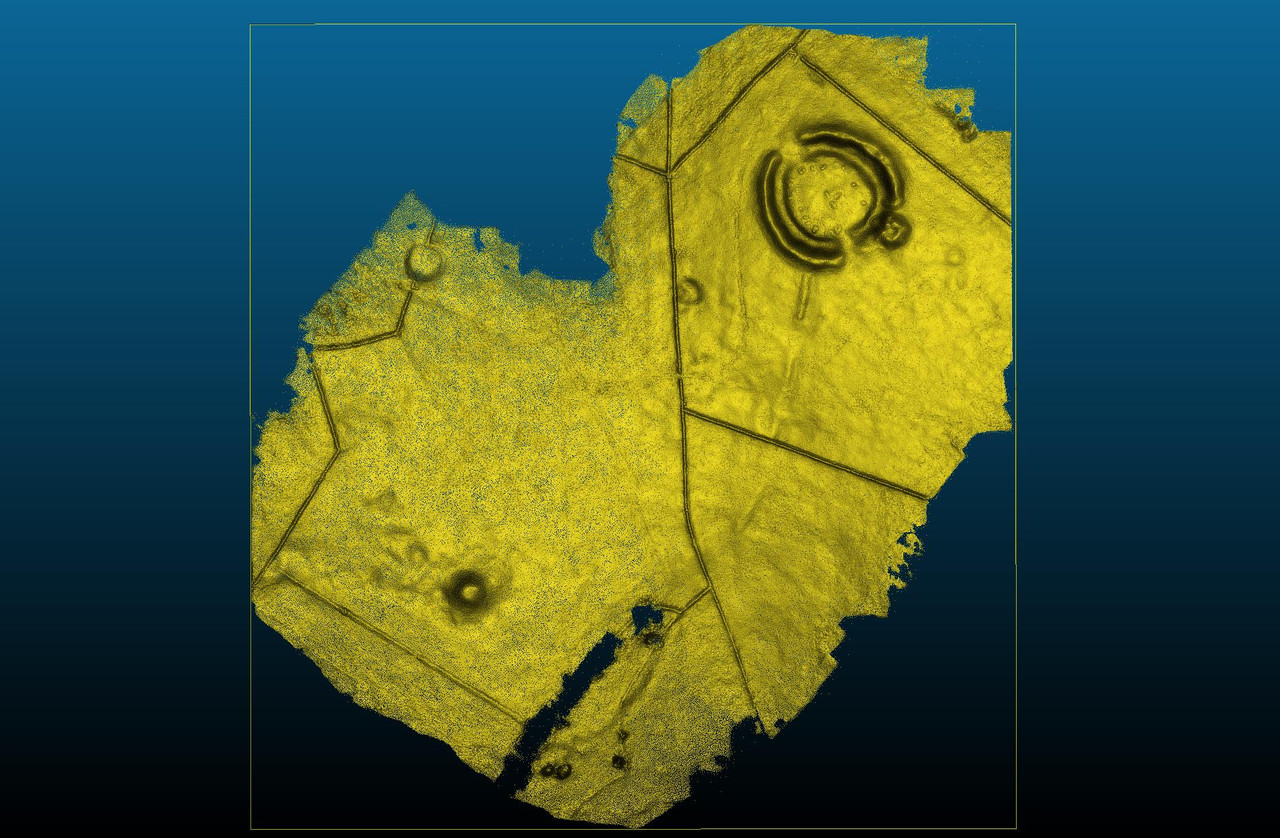 Georeferenced Orthomosaic Map and Model. The most important prehistoric site of the East Midlands, Arbor Low is a Neolithic henge monument atmospherically set amid high moorland. Within an earthen bank and ditch, a circle of some 50 white limestone slabs, all now fallen, surrounds a central stone ‘cove’ – a feature found only in major sacred sites. Nearby is enigmatic Gib Hill, a large burial mound.